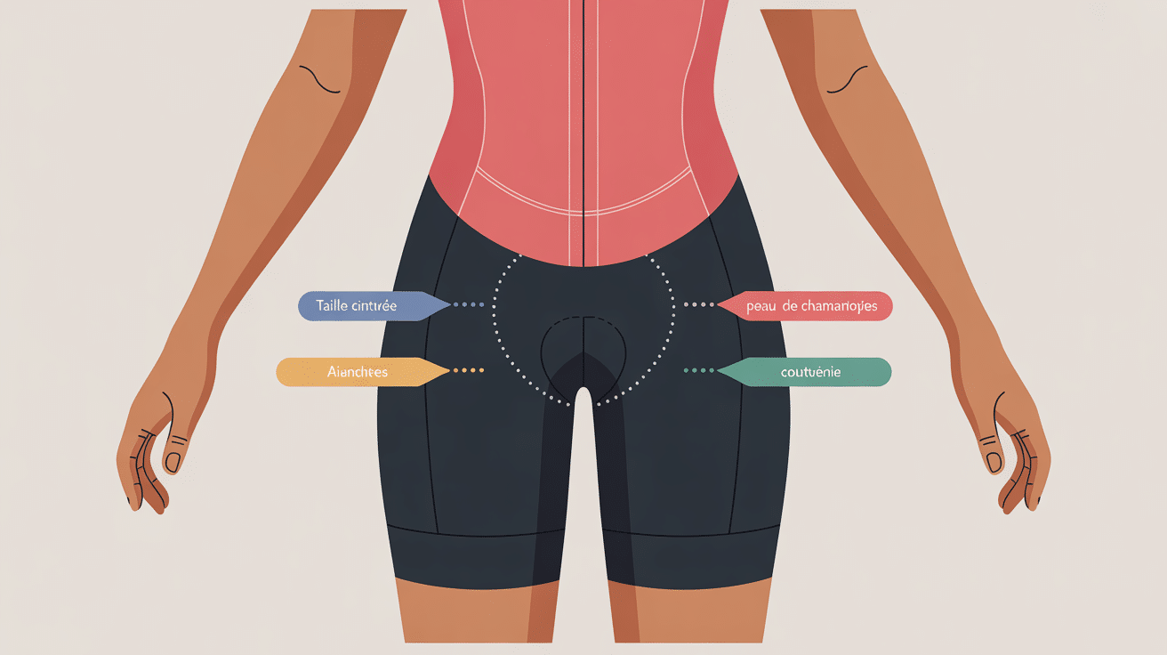 Un cuissard correctement ajusté épouse la peau sans créer de plis ni de zones de compression excessive. Il doit tenir en place lors des mouvements de pédalage sans remonter ou glisser. L’essayage en position cycliste, si possible, révèle les éventuels défauts d’ajustement.